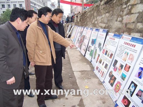 县委书记马赟、副县长鲁延柱一行观看艾滋病宣传展板