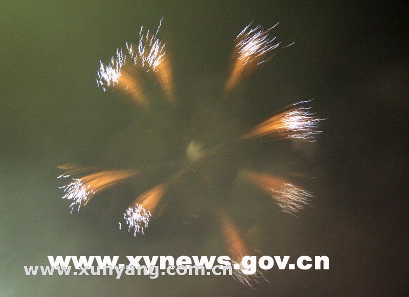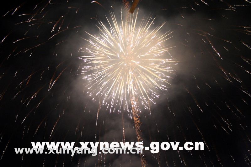 焰火晚会由旬阳县委、县政府组织,旬阳县物资公司赞助。焰火晚会上,一朵朵五光十色的烟花在空中绽放,照亮了旬阳的夜空,构成了一幅神奇美妙、如诗如画、祥和诱人的景观,呈现出一派喜人的丰收景象,展示了全县各项事业取得的巨大成就。回首2006年,旬阳大事频繁、喜事连连、科学发展、和谐平安。全县生态立县战略深入人心,工业强县战略纵深推进,项目建设年好戏连台,新农村建设起步良好,社会事业和谐发展,全县实现生产总值25.2亿元,完成财税总收入4.3亿元,农民人均纯收入达到1950元,分别较上年增长12.5%、19.4%和4.9%,充分展现出了实力旬阳、活力旬阳、魅力旬阳的崭新风貌!可以说,过去的一年,实现了经济发展提速,发展活力增强,社会大局稳定,人民安居乐业、群众满意率提高的良好局面,是实现新突破、催生新跨越的一年,是硕果累累、令人欣慰的一年,是形势看好、催人奋进的一年。成绩来之不易,这是全县人民团结奋斗,开拓进取的结果,是社会各界和广大朋友热忱关心、大力支持的结果。