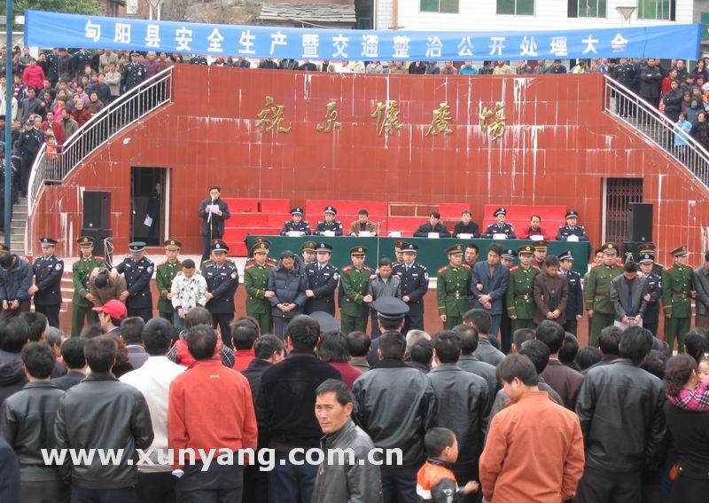 3月11日上午,旬阳县在祝尔慷广场依法对3名犯罪嫌疑人和17名交通违法人员进行了公开处理,现场千名市民受到教育。旬阳县采取得力措施,翻箱倒柜查处安全隐患。实行县级领导分片包干,责任到人;安全生产周排查、周汇报、周处理机制;县级领导月督查、月通报;加大安全生产事故责任追究力度等行之有效的办法,确保人民群众的生命财产安全。
