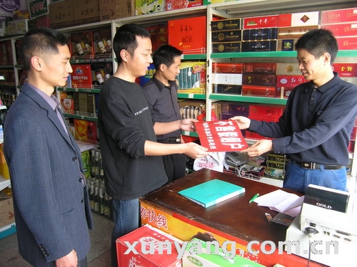 旬阳县烟草分公司为城区街道社区17户卷烟零售户发放无假烟销售信誉牌子.近年来,旬阳县烟草分公司积极开展无假烟销售一条街活动,确保消费者权益不受侵害,为维护社会稳定和推动县域经济社会快速发展做出了积极贡献。