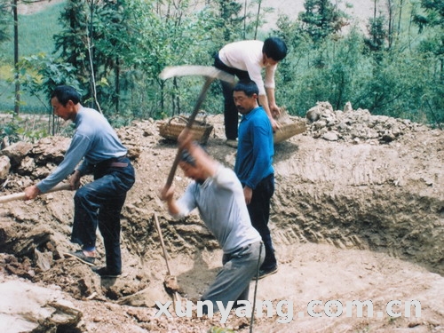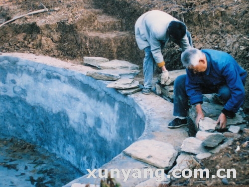 今年以來,陕西省旬阳县烟叶基础设施建设工作全面展开,在项目建设过程中,旬阳县坚持"以点带面",通过神河镇柳林村水窖设施配套工程,赵湾镇桦树梁村水池设施配套工程等样板工程的示范带动,掀起了烟叶基础设施建设的高潮.图为神河镇烟草技术员正在指导烟农修建水窖。