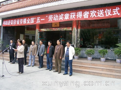 4月26日下午,我县举行简单而热烈的欢送仪式,欢送三位省劳模和全国“五一”奖章获得者赴省受奖。田丽萍、陈守业、鲁延柱、党永前、袁文勇出席欢送仪式。