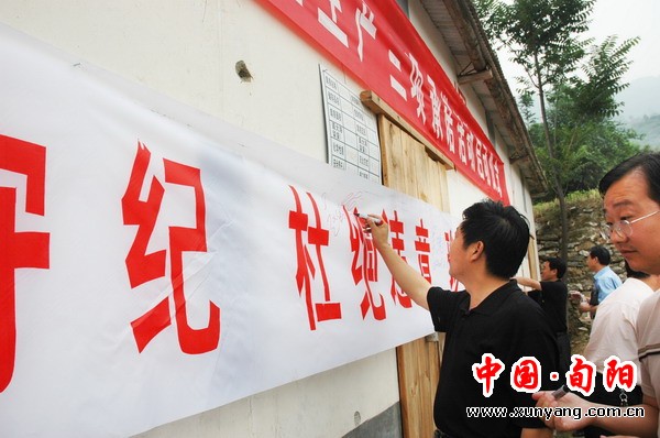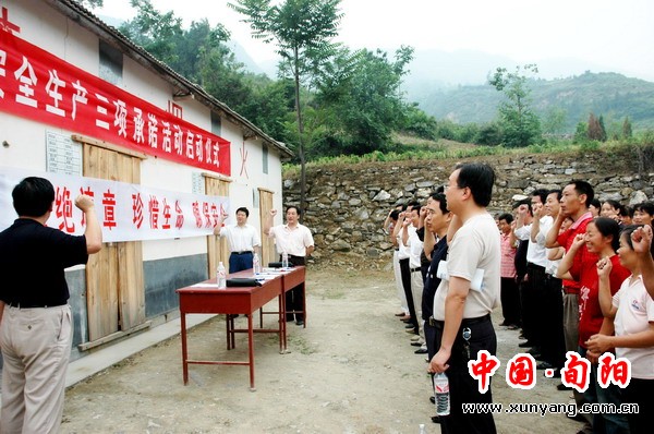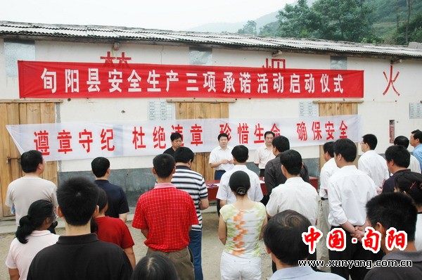 6月15日,旬阳县“安全生产月”系列活动之一安全生产“三项承诺”(即企业职工签一份安全承诺书,以“遵章守纪、杜绝违章、珍惜生命、确保安全”为主题的签名,企业职工集体承诺宣誓)活动启动仪式在旬阳汉江花炮厂举行,县安委会有关成员单位负责同志、部分企业代表及汉江花炮厂全体职工参加了启动仪式。启动仪式上,县总工会主席袁文勇做动员讲话,组织企业职工进行了集体宣誓、签订了承诺书、在“遵章守纪、杜绝违章、珍惜生命、确保安全”承诺横幅上签名。
