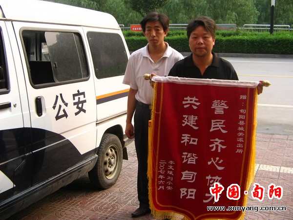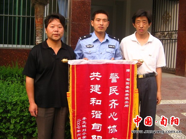 6月14日,汉中市勉县两位客人将一面"警民齐心协力,共建和谐旬阳"的锦旗送给旬阳县城关派出所,深深的表达了他們对该所的谢意. 李文斌,刘小安家住汉中市勉县同沟寺镇.他們的孩子因长期玩电脑游戏,影响了学业,受到学校和家长的指责,两名女孩子一睹气,于5月27月离家出走,外出长达半个月没有影讯,家长通过搜索网上QQ号,获知孩子在旬阳境內上网,就与旬阳城关派出所取得联系,城关派出所所长张克里,指导员丁乾接到报警求助后及时布置警力在旬阳城区16家网吧进行寻找,经过干警的努力寻找,终于在一家网吧内找到这两名孩子,城关派出所及时通知家长前来认领,两位家长见到孩子们后相拥着失声痛哭,并对城关派出所尽心尽力寻找孩子的行为非常感激,特意送去一面锦旗深表谢意.城关派出所还主动派出警力耐心的做好家长和孩子们的思想工作,并将汉中客人护送到火车站.让他們顺利返回汉中。