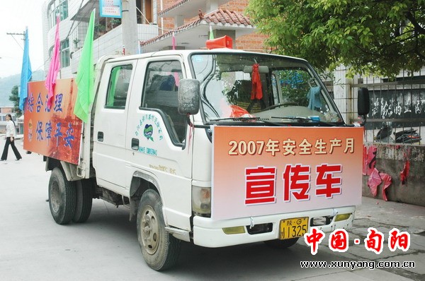 旬阳县安全生产月活动期间,组委会办公室牵头组织交警、消防、安监、质监、城建、教育、电力、海事、农机、疾控中心等单位印发安全知识宣传资料,出动安全生产宣传车,巡回到乡镇、企业、集镇播放安全生产法律法规、安全知识等,将宣传资料送到基层群众和一线职工手中。