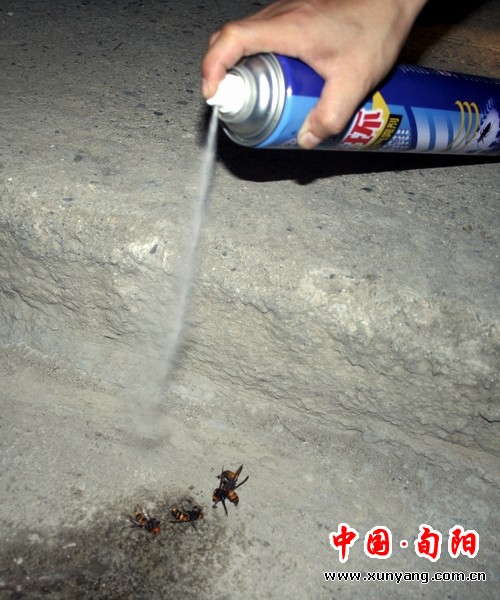 5 、在胡蜂发生密集的地区,应组织专业人员佩戴防护服,进行人工扑杀,其方法一是利用胡蜂的趋光性,在夜间用火烧(注意森林防火)其方法是用油类火把悄悄接近蜂巢,点燃火把围烧;二是人工采摘(12月份一元月份为最佳期), 用口袋收集焚烧或蒸煮。