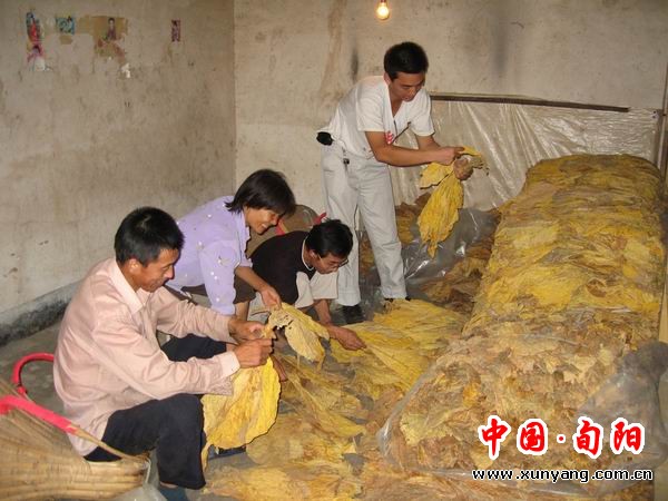 近日,笔者在金寨乡谭家院村的陈森家见到了乡干部和烟草技术员正在认真指导烟叶烘烤及分级装袋工作的场面。经了解,这种干部指导烟农烤烟生产的场面在旬阳随处可见。一位姓秦的技术员说:“由于近一个多月的阴雨天过多,导致今年烟叶大面积受损,好在县乡干部的及时指导和帮扶,使得全县10万亩烤烟如期进入了烘烤阶段。”