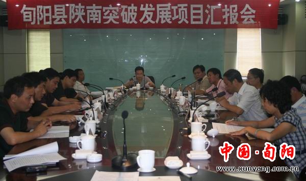 陕南突破发展调研组听取了汇报后,省陕南突破发展办主任孟军说,旬阳县与安康地区的其它县区相比有很多优势,如烤烟、矿产、水电、黄姜等,有了这些优势对旬阳率先突破发展奠定了基础。他说,旬阳如何率先突破发展,要从三个方面升级,第一是产业的集群化,单个产业的过程已经走出去了,现在要着眼长远,他说鲁家坝的工业园区就很好,但是要建成专业化的化工或者矿产园区,必须要有特色,形成集群;第二就是要规模化,对龙头企业政府要增加筹码,推动其扩产,改变机制;三是升级集约化,注重对产品的深加工,如黄姜要引进清洁工艺等。他要求到2008年,陕南GDP必须达到全省的平均水平,旬阳必须率先突破,GDP增长速度达到15%以上,为陕南的突破发展做贡献,询问了上半年的GDP增长速度,他说这个速度在安康10县区排列第二,平利县为13.8%好于旬阳,孟军还要求政府做好大项目的引进。梁兴说旬阳县要加快步伐,希望引进大型国有企业前来投资建厂,提升全县工业水平,特别是要引进矿产业,生物资源企业等;梁兴讲,旬阳县实力强,后劲足,希望共同抓好重点项目使得旬阳早日实现率先突破发展,为陕南的突破发展做出努力。市发改委副主任邓军说要实现陕南的突破发展旬阳县要率先实现突破发展。