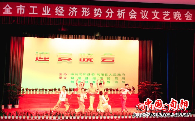为了庆祝全市工业经济形势分析会议在旬阳县胜利召开,8月16日晚8时,旬阳县委、县政府特在宣传文化中心举办迎宾晚会为来自全市10县区的领导接风洗尘。副市长何少华、市政府副秘书长陈扬斌等市上领导观看了演出,旬阳县县委书记马赟等县级领导陪同观看。