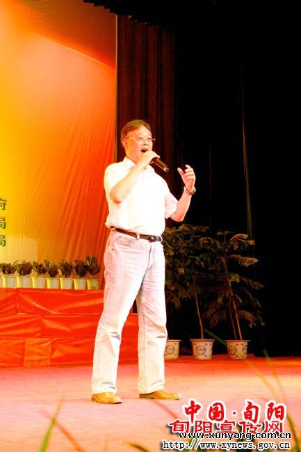 在晚会进行到一半时,市经委主任上官卫国为各位观众带来了一首大型电视剧《三国演义》主题曲《滚滚长江东逝水》,迎来了观众阵阵雷鸣般地掌声,旬阳经贸局经济运行股的干部献上了一曲《再见了大别山》回敬市县各位领导,把整台晚会推向了高潮。