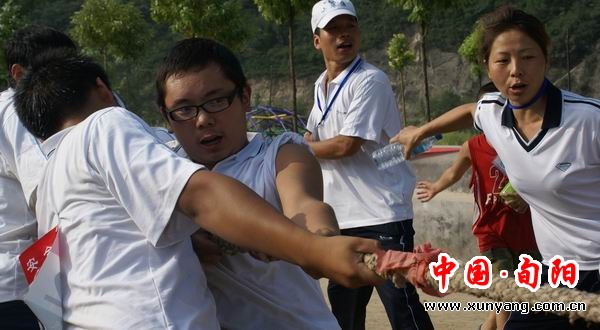 “一、二、嘿吆…..”,号子一响,喊声震天,“啦啦队”赤臂挥舞,队员们鼓足勇气把劲攒园,古铜色的皮肤渗出油亮的汗珠。汗水与尘土交融,激情与团结汇聚,友谊和胜负通过手中这根绳子传递,拔河场上,100余名农民兄弟团结一致,并肩苦战,用汗水赢得属于自己的荣誉。