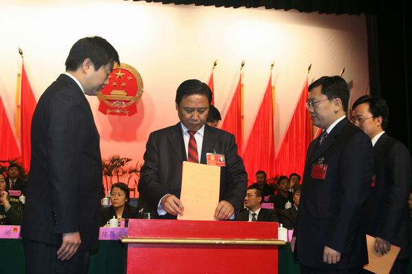10月30日上午,旬阳县十六届人代会一次会议举行大会选举。会议公布了候选人名单,通过了监票人、总监票人名单,进行了无记名投票选举。