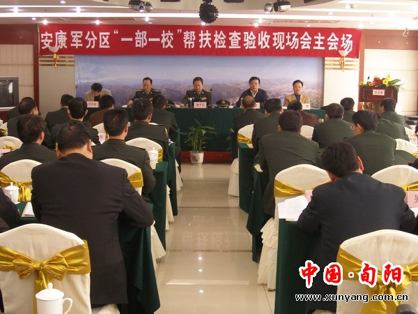 安康军分区司令员杨平社在座谈会讲话中,对各县区的工作给予了充分肯定,一是坚持把帮扶工作作为一项重要政治任务,组织领导的力度不断加大;二是坚持走军地合力、齐抓共管的路子,真帮扶的渠道越拓越宽;三是坚持从实际出发实施科学指导,帮扶工作的针对性和实效性大大增强;四是坚持帮硬件与帮软件相结合,帮扶学校整体建设水平明显提高。对下一阶段的检查验收,杨平社强调,一要切实加强对检查验收工作的组织领导,二要采取有效措施努力加快帮扶进度,三要严格按照检查验收标准和要求抓好落实,四要进一步巩固和扩大“一部一校”帮扶成果。