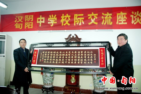 12月21日,汉阴中学校长、汉阴县教育体育局党委书记胡世宝、汉阴中学副校长沈桂平率领29位班主任及骨干教师来旬中进行校际交流。座谈会上两校就新课程改革和德育工作进行了经验交流,参观了学生公寓、食堂、餐厅以及有关部室。