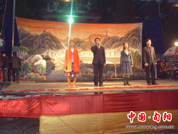 12月26日夜,双河镇自己筹办的“喜迎十七大,三创促和谐”2008年元旦文艺晚会正式上演了!淅沥的小雨和冬日的寒意丝毫没有影响群众和同学们对晚会的热情,整个操场坐满了兴致勃勃前来观看演出的观众,让会场显得喜气洋洋、热闹非凡。晚会也得到了上级部门的全力支持和双河地税所、双河供电所、双河卫生院等单位的大力赞助,使其晚会得以顺利且圆满举行。晚会节目有舞蹈、相声、小品等,精彩纷呈,掌声不断。县文化旅游局的领导和镇上的全体领导干部也同观众一同观看了晚会。经过近两个多月的前期准备,本次晚会得到了领导、观众们的充分认可和高度赞扬,达到了预期的效果。这台晚会充分展现了双河人民群众的文化生活,凝聚了全体演职人员的辛劳和汗水。这次晚会将铭记心间,成为每位观众记忆中难以忘怀的一页。