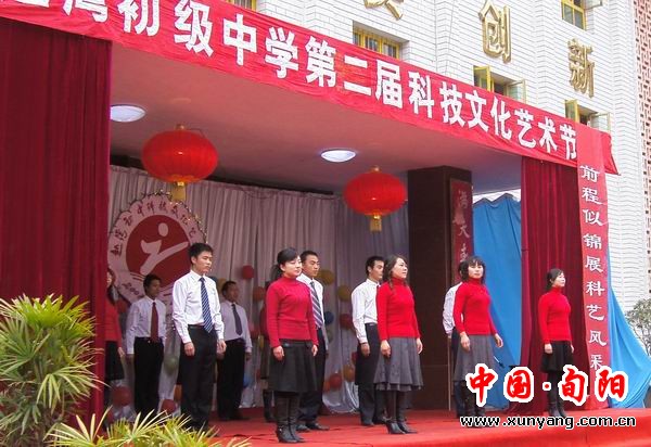 为进一步落实素质教育,培养学生发现美、创造美、欣赏美的意识以及学生的科学探索精神,元月3日,赵湾初级中学隆重举行第二届科技艺术节。参加本次活动除赵湾镇各单位的领导外,团县委、教育局、科技局、文化局等单位的领导也参加了本次活动。本次艺术节活动共分三个层次进行:一是学校通过多媒体课件汇报学校的教育教学工作。二是参观学生的各类作品,主要有电子类、手工制作类、剪纸书法类、科幻绘画类。三是文艺节目汇报演出。整个活动过程,时间安排合理紧凑,内容丰富,质量很高。展出的学生作品有很多精品之作,七五班夏小雨同学的一幅金猴剪纸让参观者叹为观止。文艺节目汇演又将艺术节活动推向一个高潮。赵湾镇党委书记看过小品《家访》后,饶有兴趣地说:“这个节目如果再稍做加工,就是一个都市碎戏,学生的演技已经达到了炉火纯青的地步。