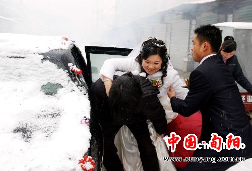 1月15日是农历腊八节,旬阳县迎来入冬以来第一场雪,天寒地冻适逢良辰吉日,城市小巷里结婚嫁娶场面充满喜庆和温馨。