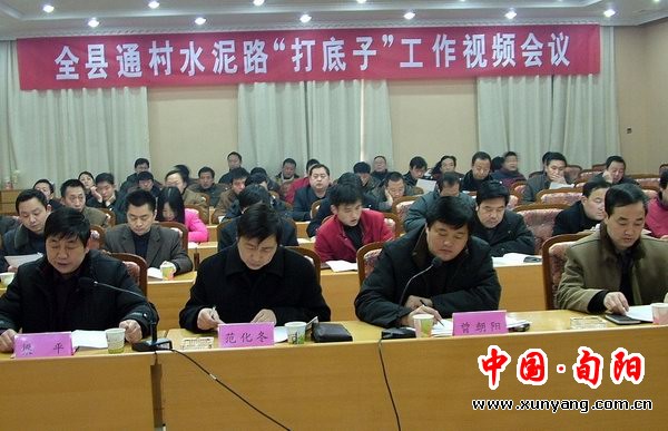 1月25日,旬阳县召开通村水泥路“打底子”工作视频会议,认真回顾总结2007年全县通村水泥路建设工作,全面安排部署2008年通村水泥路“打底子”工作,动员广大干群,抢抓机遇,大干快上,迅速掀起今冬明春群众“打底子”会战高潮。县委副书记曾朝阳、人大常委会副主任熊生明、副县长范化冬、政协副主席党永前出席会议,县直相关部门和各乡镇负责人分别在主会场和分会场参加会议。曾朝阳主持会议,范化冬作了重要讲话。