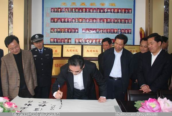 宋洪武先后视察了段家河镇李家庄村综合治理基层基础建设、城关镇鲁家台社区平安创建和县公安局、县法院、县检察院基础设施建设,详细了解民警工作、生活情况和警务室矛盾纠纷排查化解等工作,认真调研公安局信息监控、110报警和刑侦以及检察院规范执法、法院审判工作情况,对旬阳政法工作给予了高度评价。同时,宋洪武还深入到旬阳丽都家园小区、中科纳米材料公司、尧柏水泥有限公司、白柳集镇和太极城森林公园进行视察,充分肯定了旬阳突破发展。