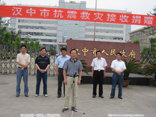 一方有难,八方支援。5月17日,旬阳县委书记马赟冒着酷暑带领县委常委县纪委书记皇甫健、县政府副县长张世波等一行,代表旬阳45万人民向这次地震受灾严重的汉中市捐款20万元。汉中市委常委、常务副市长刘玉明代表汉中市348万人民感谢旬阳县对灾区的援助和关心。