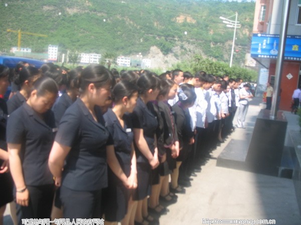 苍生泣血,草木同悲。5月19日清早,旬阳县委大院、检察院、法院、公安局等所有党政机关、企事业单位、基层组织全部降半旗对四川汶川大地震遇难同胞表达的深切哀悼。上午8时,在全县领导干部大会上,180余名参会者首先哀悼三分钟。全县公共娱乐活动停止营业三天。