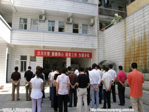 防空警笛在长长的尾音中结束了,旬阳县城在那一刻死一般宁静;时间再那一刻停留驻足,向四川灾区的人们送去一份祝福。正如人们所说的“愿逝者安息,生者坚强”。