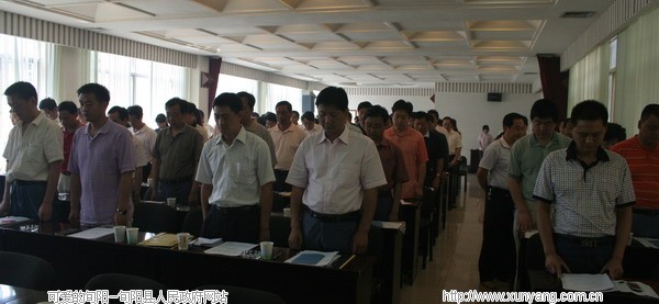 会议期间14点28分全体与会人员起立默哀三分钟,向在本次地震灾害中遇难的同胞表示沉痛哀悼。