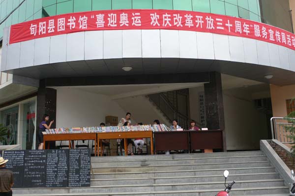 6月10日 旬阳县图书馆在文化宣传中心举行“喜迎奥运欢庆改革三十周年”图书服务宣传周活动