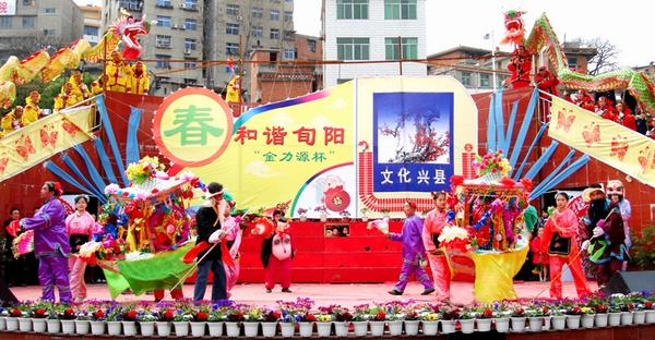 积极开展各种文艺调演活动。县上经常组织开展全县性的文艺调演活动,先后举办了旬阳青年歌手大奖赛、旬阳农民歌手大奖赛、旬阳校园歌手大奖赛、旬阳民歌大奖赛等活动。去年还举办了“太极城农民文化艺术节”,分东区、北区、南区三个片区预赛,最后在县城进行总决赛,全县28个乡镇全部组队参加,参与表演的民间艺人千余人。在艺术节上,评选产生了旬阳“十佳农民歌手”、“十佳乡村自乐班”、“十佳民间唢呐手”、“十佳民间曲艺节目”和“十佳演出奖”。与此同时,县上每年还要选调两个以上乡镇在县城举行动感乡村文艺展演活动。“和谐赵湾”、“魅力赤岩”、“走进棕溪”、“动感甘溪”、“双河飞歌”等乡镇专场文艺演出,异彩纷呈,好戏连台。以乡镇为单位组织开展的地方文艺演出活动更是遍地开花,铜钱关乡“竹文化节”、段家河镇“樱桃花开节”、张坪乡“牡丹花节”的相继举办足见旬阳乡村文化活动活跃之一斑。