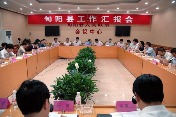 当天下午,旬阳县委、县政府在县政府会议室向副省长郑小明一行就旬阳县的发展思路及工作进展情况、新型农村合作医疗工作开展情况、社会事业其他方面工作的开展情况等作了详细汇报。副省长郑小明在认真听取了旬阳县委、县政府的汇报后说,旬阳县风光迷人、矿产丰富,在市县领导的正确领导下,各项工作取得了显著成绩,卫生基础设施健全。作为全省新型农村合作医疗工作试点县,为全省新农合工作的开展作出了积极贡献,值得充分肯定。