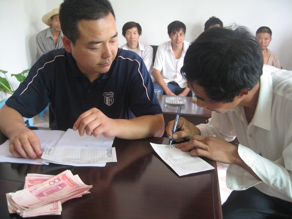 近日,旬阳县关口镇财政拿出31000对胡昌寿等14户建正大模式50平方米以上、薛同群等10户建正大模式20至50平方米的养猪大户分别给予1500元和1000元的奖励,以此推进该镇畜牧产业的发展,力争实现当年生猪出栏2万只的目标。图为镇干部为大户发放奖励资金。