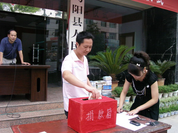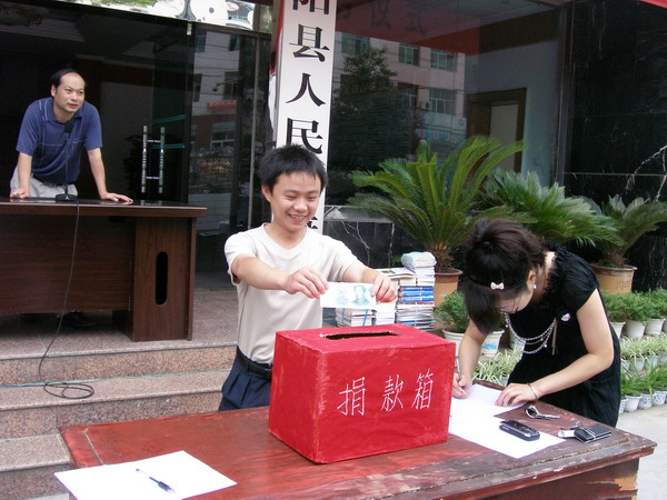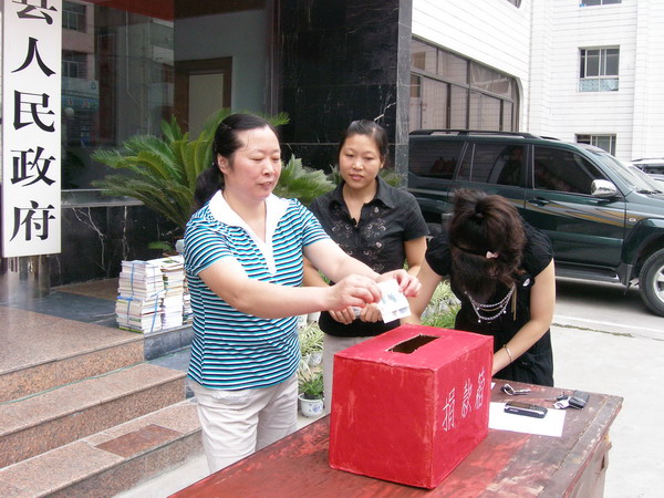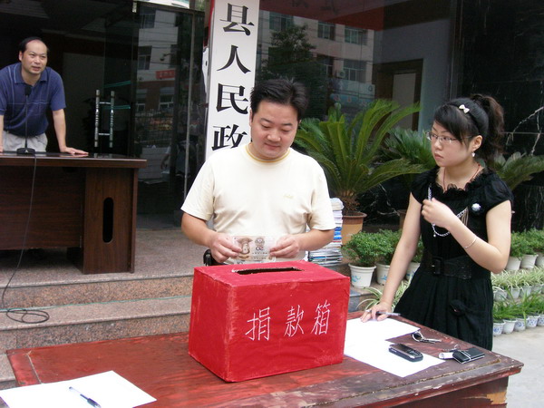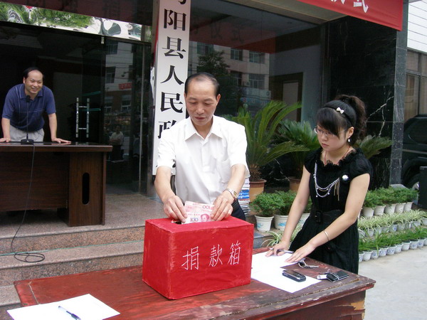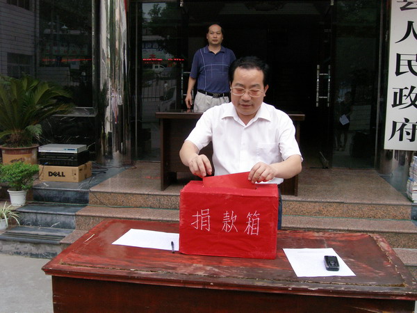 捐款仪式上,在外开会的县长邹俊杰打来电话,个人捐款500元。县政府其他领导分别以不同的方式向所联乡镇捐款捐物。