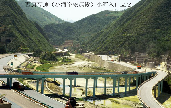 西康高速公路是中国国道主干线——西部大通道包头至北海公路在陕西境内的一段。由陕西西安市至安康市,途经户县、柞水县、镇安县和旬阳县。小河至安康段(小康段)是安康市开工建设的第一条高速公路,西康高速公路安康段线路起于旬阳县小河镇界牌立交,途经大棕坡、桐木乡,穿过包家山隧道至汉滨区茨沟、松树坝,沿冉家河而下,至花园乡,止于五里镇的尹家营,全长57公里,其中60%以上路段为隧道桥梁,总投资44亿元,按照山区四车道高速公路标准建设,将与建成通车的西安到柞水高速公路连接,形成西安到安康的快速通道。