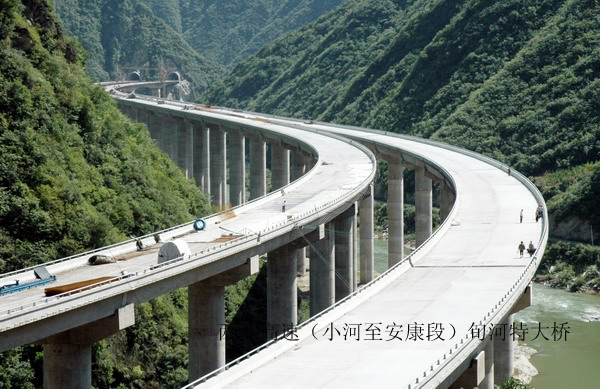 日前,西康高速公路控制性工程旬河特大桥顺利合拢。这座大桥位于旬阳县桐乡境内,全长1768米,桥梁主桥跨径510米,桥面到河床面最高处为63米,是西康高速公路项目中最长的一座特大桥,工程工期历时两年四个月。