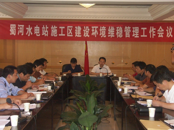 会议听取了汉江公司蜀河电站项目部关于电站建设情况的介绍,县支电指挥部相关办组负责人宣读了《蜀河水电站施工区建设环境维稳管理工作实施方案》和《关于加强蜀河水电站建设秩序、优化外部环境的通告》。为确保电站建设环境得到保障,县委县政府成立了“旬阳县蜀河电站施工区建设环境维稳管理领导小组”,下设“综合协调组”和“环境维护组”。各组组成人员均从县直相关单位和蜀河镇中抽调。