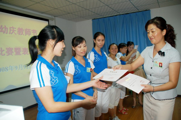 表彰会对2007—2008年度在园内各项技能、业务比赛中荣获一、二、三等奖的个人以及工作优异的班组、个人予以表彰奖励。会议在全体教职工郑重的宣誓中落下帷幕。