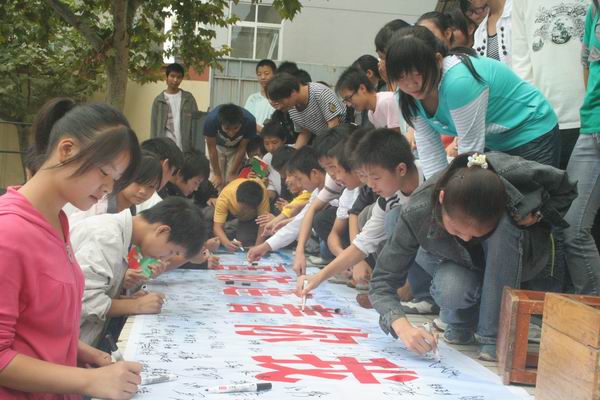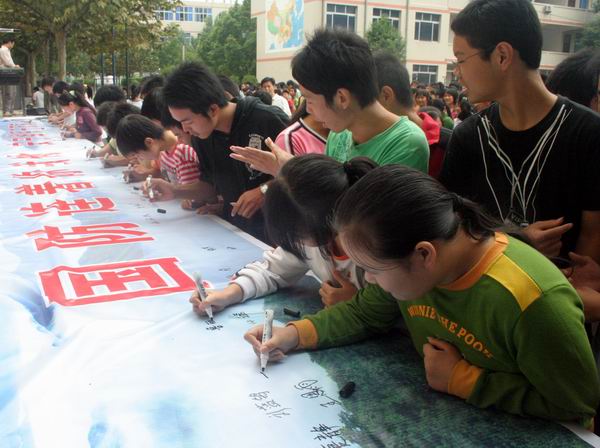 9月20日,旬阳县纪念第八个全民国防教育日签名活动在旬阳中学操场举行,近千名学校师生参加了签名仪式。
