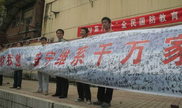 据悉,在同一天,该县组织各乡镇和学校师生开展国防教育和“国防连着你我他,安宁维系千万家”签名活动,目的是通过在全县和学校开展国防教育活动,大力营造全民关注国防、支持国防、建设国防的浓厚氛围。