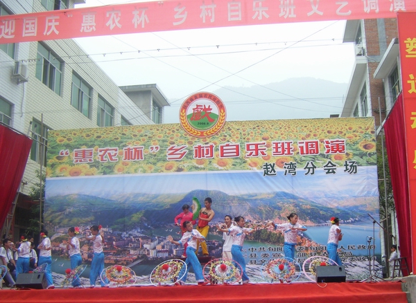 近年来,在县委、县政府的坚强领导下,在上级业务部门的精心指导下,赵湾镇高度重视文化工作,深入贯彻上级精神,大力推进“文化兴镇”战略,着力构建河源生态文化,强力塑造“动感乡村”,不断满足人民群众的精神文化需求,广泛开展群众喜闻乐见的文化活动,先后举办各类群众性文化活动20余场次,充分挖掘地方文化,创作了一批贴近生活、贴近实际,贴近群众,紧扣时代脉搏,体现时代风貌的文艺作品,一批乡土文艺人才脱颖而出。目前,该镇已组建了业余文艺演出队、电影放映队、村民自乐班,按照文化进乡村的要求,把文化建设渗透到了经济社会发展的方方面面,全镇人们崇尚、参与、共同建设先进文化,呈现出积极向上的精神风貌,促进了和谐社会建设。
