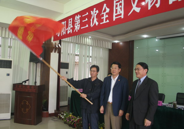 最后,市委常委、副市长王东华、旬阳县政府县长邹俊杰共同为文物普查队授旗,标志着旬阳县第三次全国文物普查正式启动。