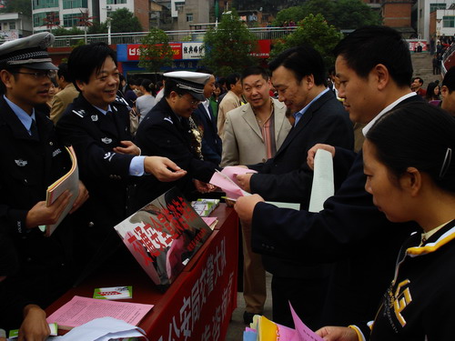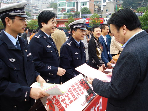 10月9日上午,县监察局,纠(行)风办在县城祝尔慷广场,举行县级相关部门行风民意测评。县交警大队利用这次机会设立交通法律法规政策宣传咨询台,向广大干部和群众宣传法律法规政策。