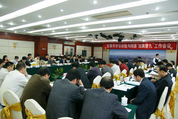 邹俊杰在工作汇报中说,多年来,旬阳县认真贯彻落实科学发展观,牢固树立教育优先发展地位不动摇,把发展教育事业作为民生工程的主要任务来抓,以实施高水平高质量的普及九年义务教育和创建省级教育强县为目标,大力弘扬“三创”精神,不断加强教育基础设施建设,稳步推进中小学布局调整,优化教育资源配置,着力改善办学条件,通过深入开展中小学规范变化管理,狠抓教师队伍建设,积极探索联片教研新模式、全面实施素质教育,办学水平和教育质量显著提高,教育事业呈现出突破性、跨越式、均衡化发展态势。全县现有各级各类学校150所,其中高级中学4所,职中1所,初中及九年制学校34所,完全小学76所(附设教学点228个),幼儿园35个。中小学在校学生70461人,其中寄宿学生34052人。全县中小学校园占地面积104万平方米,校舍总面积49.77万平方米。现已建成省级标准化高中1所,市级保准化高中3所;国家级重点中等职业中学1所;省级示范中小学4所,市级示范中小学5所;省级示范幼儿园2所;省级教育强乡镇10个,市级教育强乡镇14个。同时建成省级示范农技校13个,市级示范农技校16个。在实施“双高普九”工作中,一是加强领导,夯实责任,形成强大工作合力;二是广泛宣传,深入发动,营造浓厚创建氛围;三是积极筹资,加大投入,努力改善办学条件;四是创新机制,优化结构,狠抓队伍建设;五是强化措施,保学控辍,普及程度不断提高;六是突出特色,全面育人,素质教育取得新成效;七是统筹兼顾,稳步推进,各类教育协调发展;八是因校制宜,打造亮点,校园文化建设彰显特色。