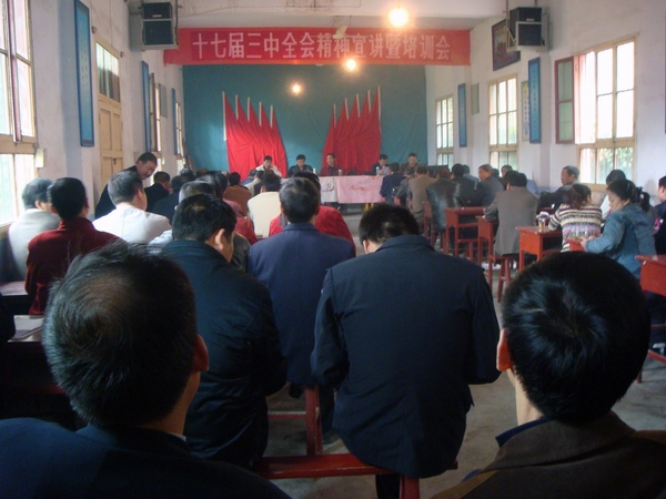 10月23日,安康市委政研室副主任屈善社带领宣讲团成员一行五人,深入旬阳县段家河镇开展党的十七届三中全会精神宣讲活动,该镇镇村干部90余人参加了培训辅导。