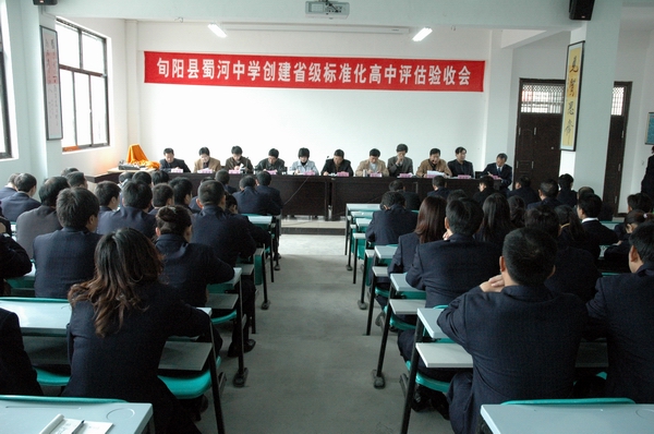 11 月18日,省教育厅验收组对旬阳县蜀河中学创建省级标准化高中工作进行了评估验收,副县长李萍陪同检查,并做重要讲话。