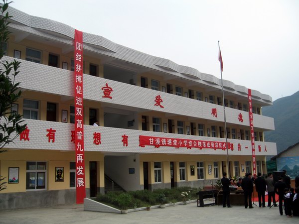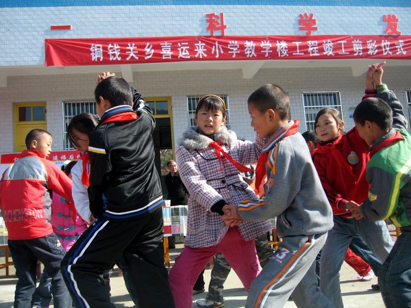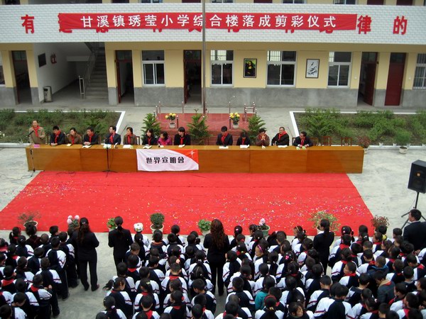 就在铜钱关乡喜运来小学竣工的前一天,由世界宣明会援建的另外一所学校旬阳县甘溪镇琇莹小学综合楼也正式竣工使用。没有绚丽的舞台,没有华美的服装,甘溪镇琇莹小学的孩子们用自编自演的小节目向出席学校竣工仪式的世界宣明会一行表达感激之情,演绎属于他们自己的生活。甘溪镇琇莹小学的前身甘溪镇中心小学于2005年遭遇百年不遇特大洪水,建于上世纪80年代的土木结构校舍倒塌,学生就学面临困境,世界宣明会迅速深入学校实地查勘,及时援助4万美元帮助学校重建了教学楼。