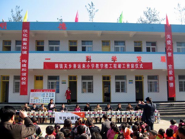 “世界宣明会的叔叔阿姨为我们建起了一所漂亮的学校,使我们像城里孩子一样,在崭新的教室上课,千言万语也无法表达此时的感激之情,‘谢谢’这两个字在这里显得苍白无力,我一定认真学习,时刻怀着感恩的心回报社会、回报祖国!”11月25日,由世界宣明会援建的旬阳县铜钱关乡喜运来小学竣工使用,学校全体师生欢聚一堂热烈欢迎远道而来的客人,六年级学生陈祥龄代表师生向世界宣明会以及省市县慈善协会和旬阳县委、县政府表达了由衷的感激之情。