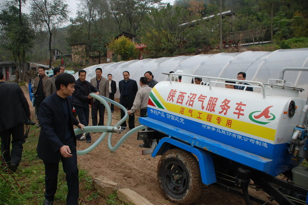旬阳县针对农村沼气建设中存在的“出渣难、换料难”等问题,率先在全县建立沼气服务网点,免费配发6台农村沼气服务车,在农村开展抽渣服务,受到广大农民朋友热烈欢迎。