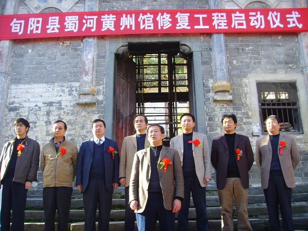 黄州会馆位于旬阳县蜀河古镇,为清代“黄帮”(即黄州籍客商)所建,主体建筑以中轴线为基准,层次分明,结构严谨,气势恢宏,保持我国传统的宫殿建筑布局,尤能鲜明体现出浓郁的南方建筑特色,也体现了蜀河古镇曾经的繁华景象。是陕南规模最大、最具代表性的会馆杰作,也是陕西省重点文物保护单位。由于历史久远,年久失修,黄州会馆已经破落不堪。经过该县积极争取,黄州馆修复工程得到了省文物局的高度重视和大力支持,并给予了100余万元的项目资金扶持,修复工程分两期进行,一期工程历时半年。