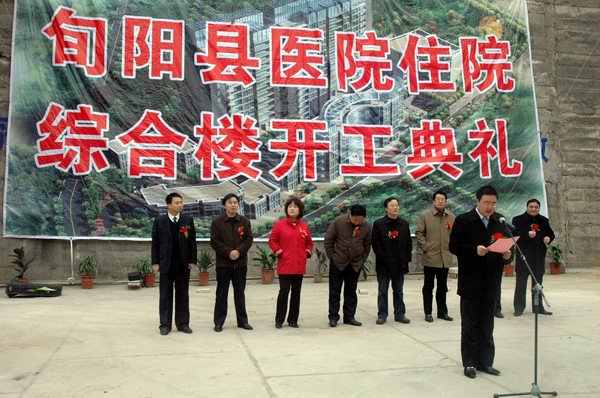 12月22日,旬阳县医院住院综合楼开工建设,马贇、陈昌学、邹俊杰、王惠、曾朝阳、陈德智、刘家骐、王武臣、张世波等县级领导出席开工仪式。
