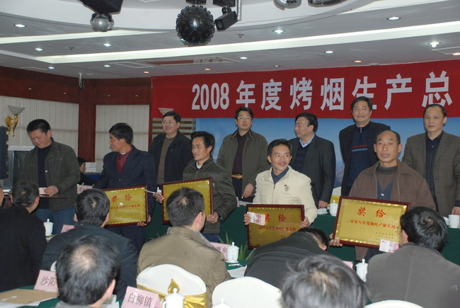 总结表彰会上,烤烟生产成绩突出的赵湾镇等14个乡镇、县烟草局等8个先进单位、烤烟产值位居全县前10名的赵湾镇王庄村等10个烟草产业大村、烟农满意的刘永鹏等15名优秀烟草技术员和赵湾烟站等3个烤烟生产先进烟站受到了表彰奖励。